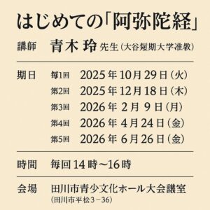教行信証学習会の案内画像。講師は延塚知道(大谷大学教授)。2026年1月14日14時〜16時、福岡県田川郡香春町・蓮台寺にて開催。